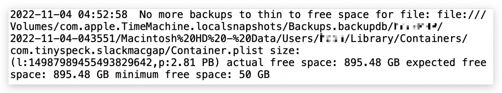 For my machine, it show that TM is looking for some path that have 2.81 PB in size! I just ignore that folder in my TM process. See the next topic for how to do this.