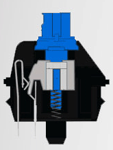 ความแตกต่างๆของ Switch สีต่างๆจะขึ้นกับน้ำหนักการกดแป้นพิมพ์, แรงต้านที่ส่งกลับ และเสียงที่ดังจากการกด ด้านล่างเป็นภาพตัวอย่าง animation ประกอบการทำงานของ Blue Switch ที่อธิบายถึงกลไกในการทำงานของแป้นพิมพ์แบบนี้ครับ กลไกจะแตกต่างกันไปสำหรับ Brown และ Red Switch