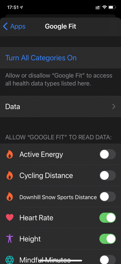 - เลือกในส่วน ALLOW “GOOGLE FIT” TO READ DATA
