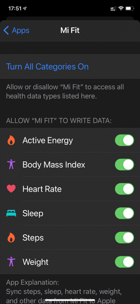 - เลือกในส่วน ALLOW “MI FIT” TO WRITE DATA