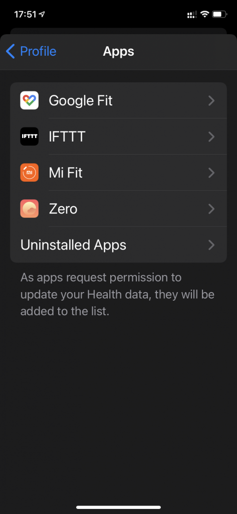 - แตะที่ App ในส่วนของ Privacy แล้วแตะที่ Google Fit